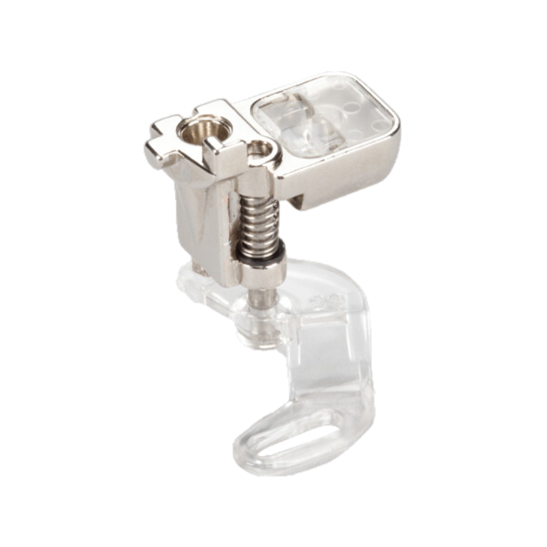 The vertical spring presses the foot securely to your project, preventing the fabric from riding up with the needle (flagging). The material therefore lies flat while it is being sewn, allowing you to produce neat, consistent stitches.