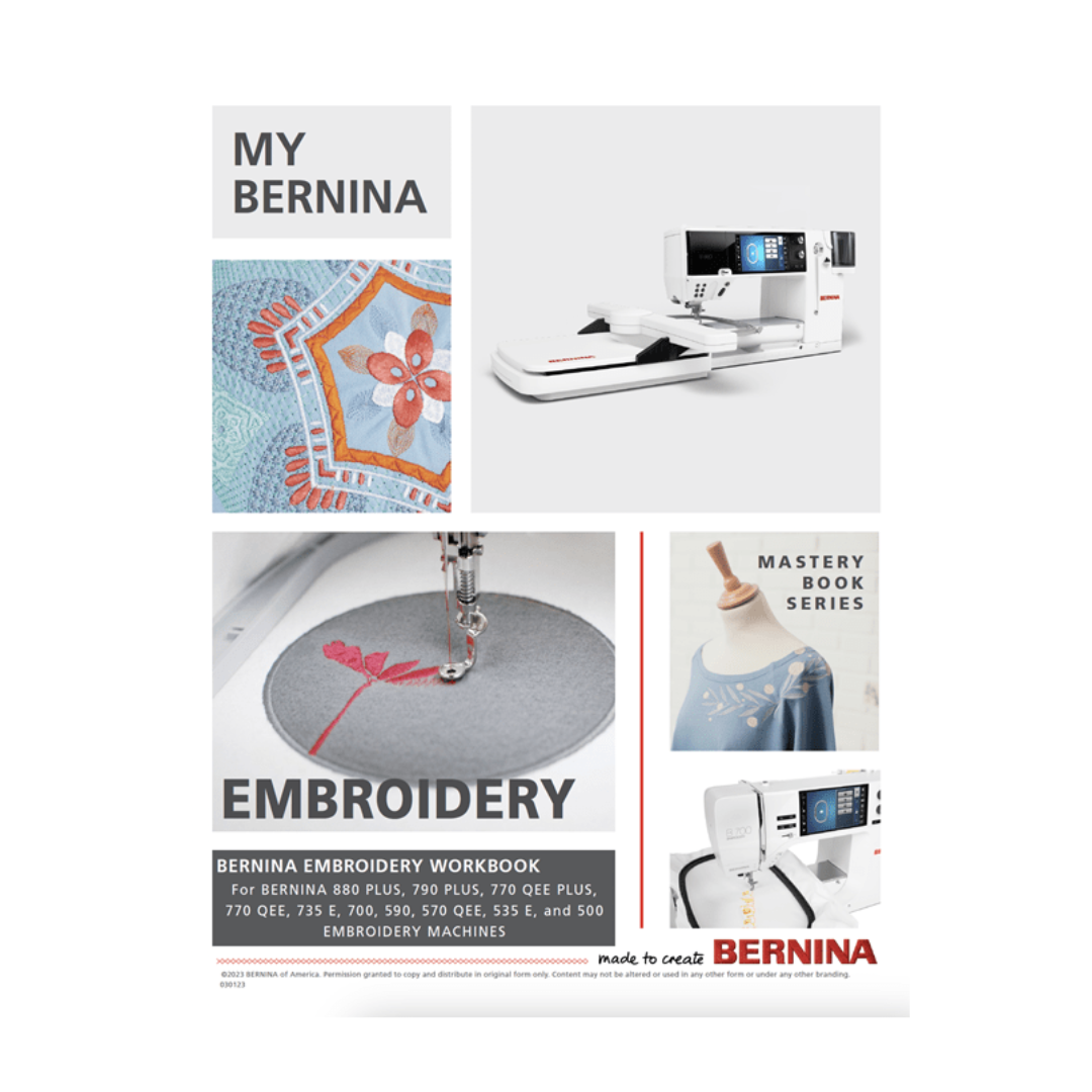 Learn to master your BERNINA Embroidery machine as you work step by step through hands-on activities from the My BERNINA Embroidery Mastery Workbook.