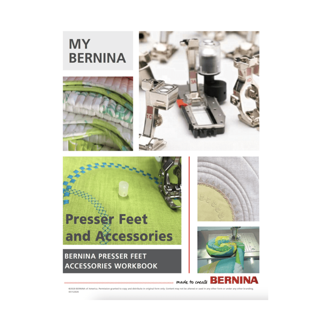Learn to master your BERNINA Presser Feet and Accessories as you work step by step through the activities in the My BERNINA Accessories Mastery Workbook.